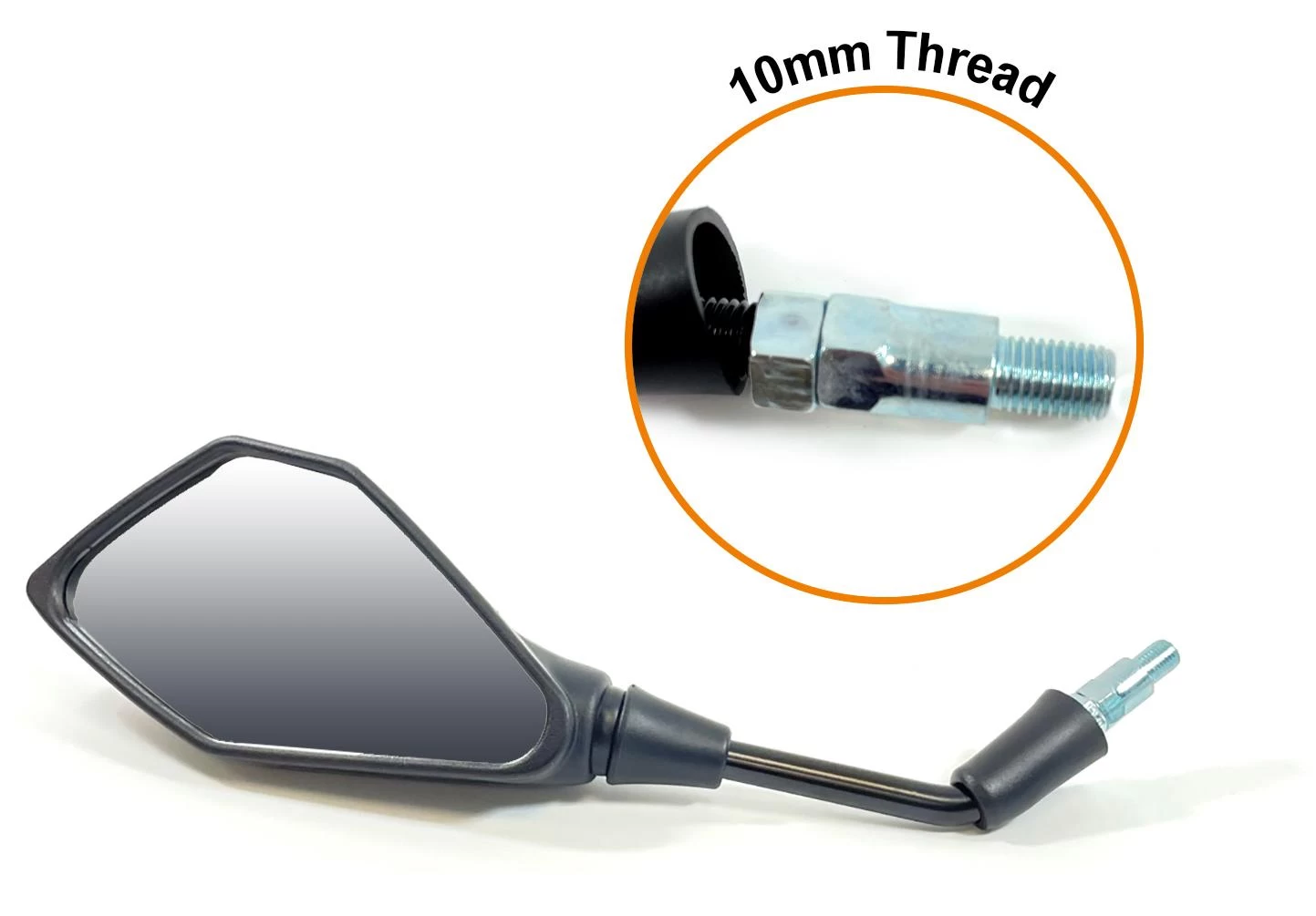 The Halfords Core Diamond Mirror is an ideal replacement for motorcycle and scooter mirrors that have become damaged or cracked. Simple to install with 10mm thread this articulated mirror can be positioned in the optimum position for the drivers view.