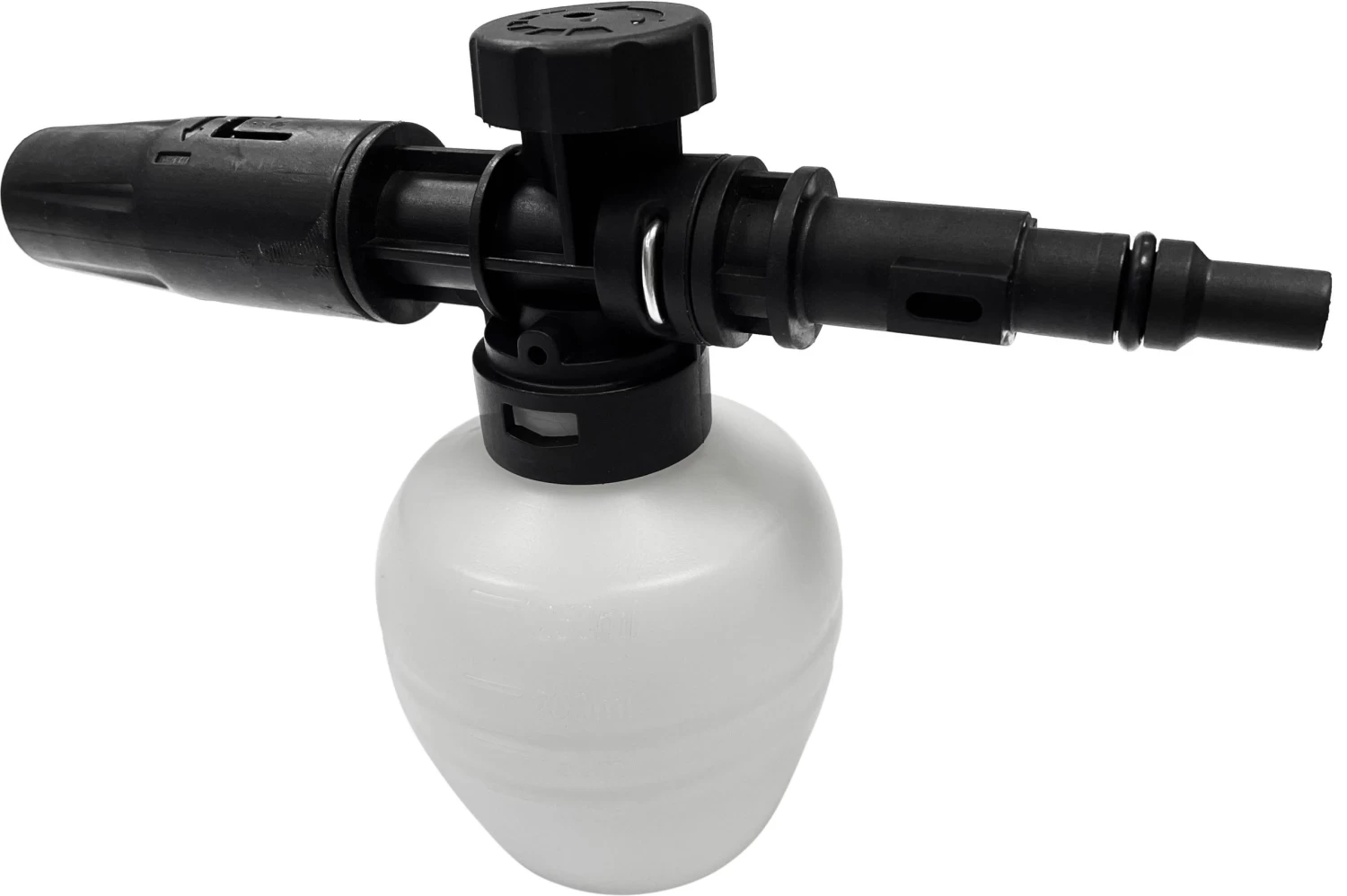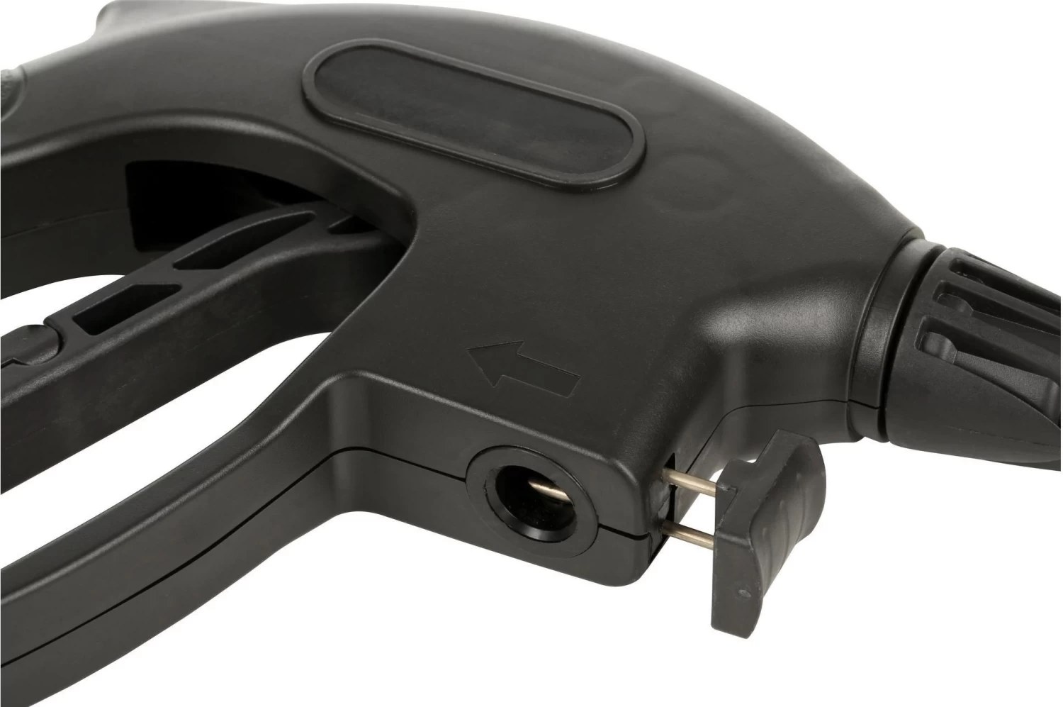- Wheels and tall handle for easy portability High pressure gun and lance