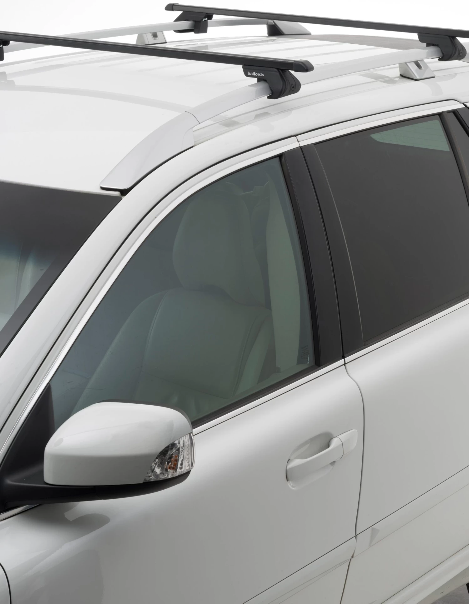 The Halfords Raised Rail Steel Roof Bars Set r2 comfortably fits vehicles with raised rails