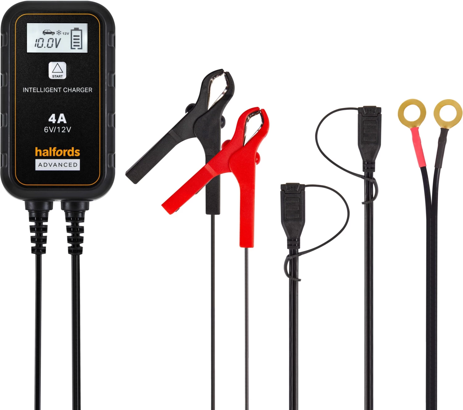 The Halfords Smart Motorcycle Battery Charger (4A) is perfect for 6V and 12V motorbikes and most smaller vehicles.With one touch button operation it provides 7 stage charging cycle for Lithium batteries and a 9-stage cycle of Lead Acid/AGM batteries. Connect and be sure that the bike battery will be fully charged and automatically adjusts to long-term maintenance mode when battery is full.