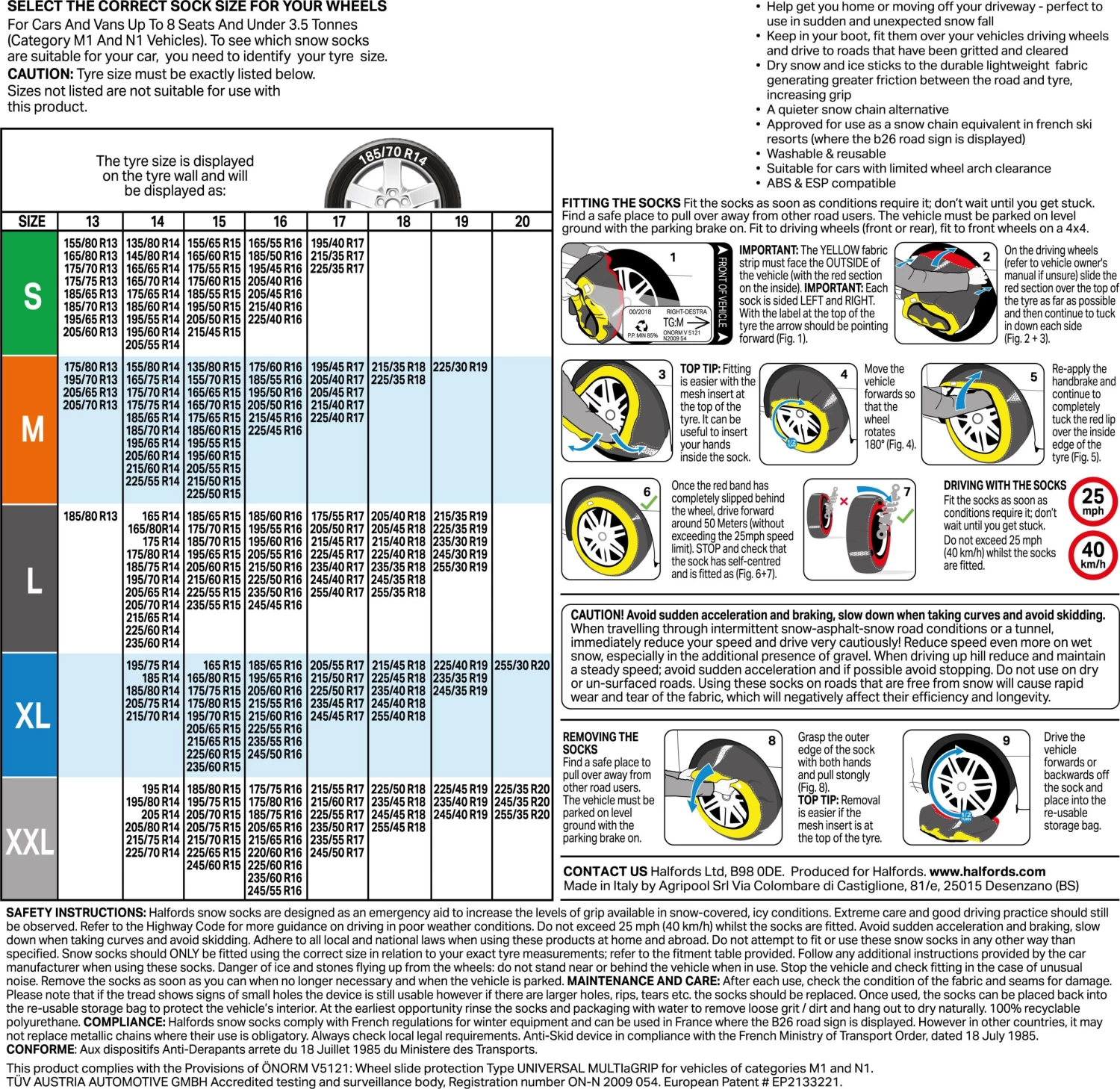 - Your car tyre size will determine which size Halfords Snow Sock you should purchase.