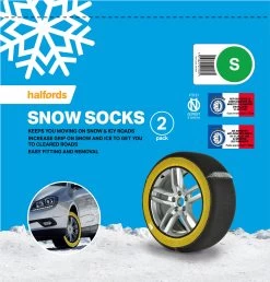 These easy to fit Halfords Snow Socks Small are a lightweight snow chain alternative. They give the grip needed on snow and ice covered roads to keep you on the move. The snow socks are also suitable as a snow chain equivalent in French ski resorts.