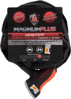 Remarkably compact, Magnum Plus Heavy Duty Link Plate Lock is constructed of hardened steel plates and features Magnum's pick, pull and drill proof Z-Cylinder. Once unfolded, the Magnum Link Plate Lock has the length to secure the Bike to a solid object. Includes a universal all-tube strap-mounting bracket along with 4 Keys with 1 Microlight LED Key to increase visibility in poorly lit areas.