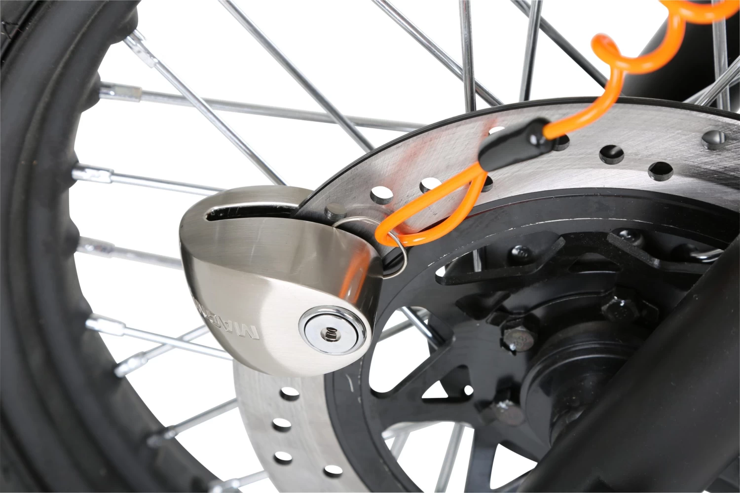 The MagnumPlus Atlas Alarm Disc Lock 6mm Pin provides motorcyclists and other power sports users outstanding security in a small convenient size. The pin-type model offers a great protection against drive off thefts and easily fits into a pocket or tank bag. It comes complete with carrying case and disc reminder cable to prevent accidental drive always.