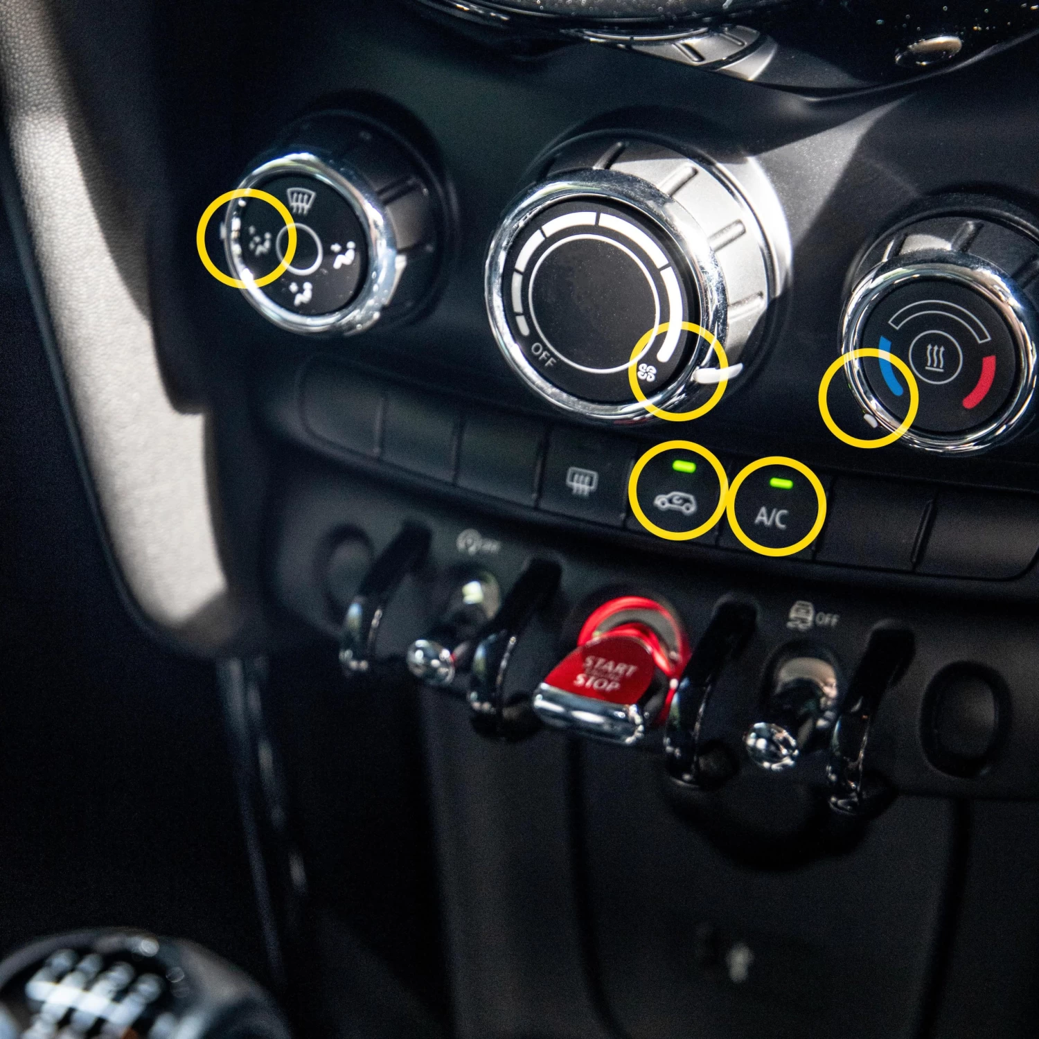 - Start the vehicle with the fan set on high (circulated cold air) and close all windows