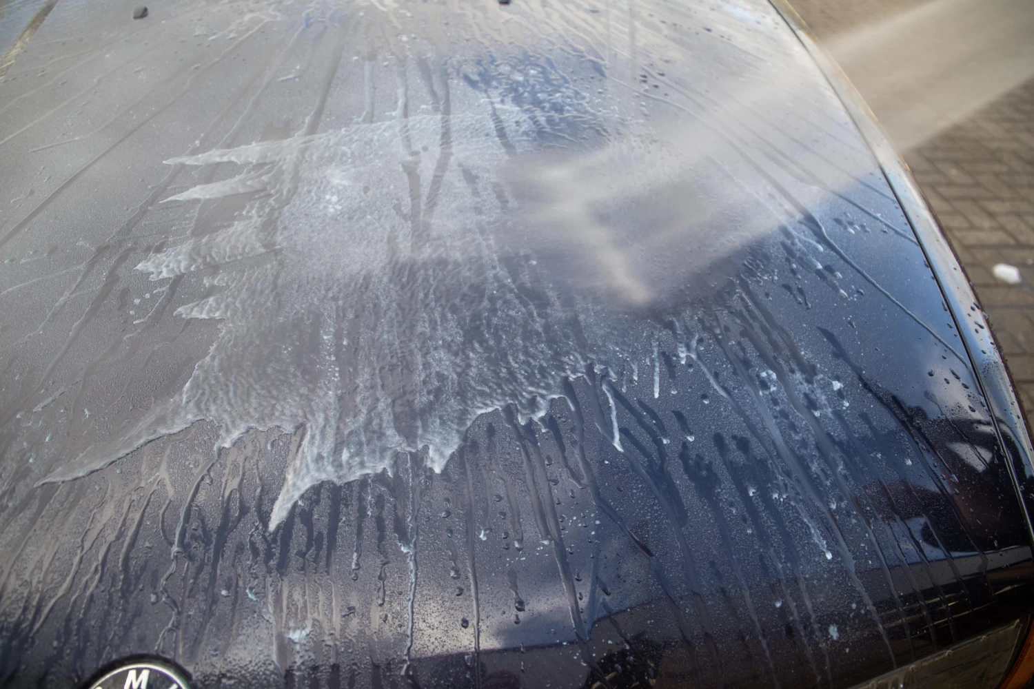 After washing & rinsing off the soap, simply spray on Meguiar’s Hybrid Ceramic Wax and then follow that with a second rinse with a strong stream of water. This final rinse helps to spread and lay down the wax evenly for you.