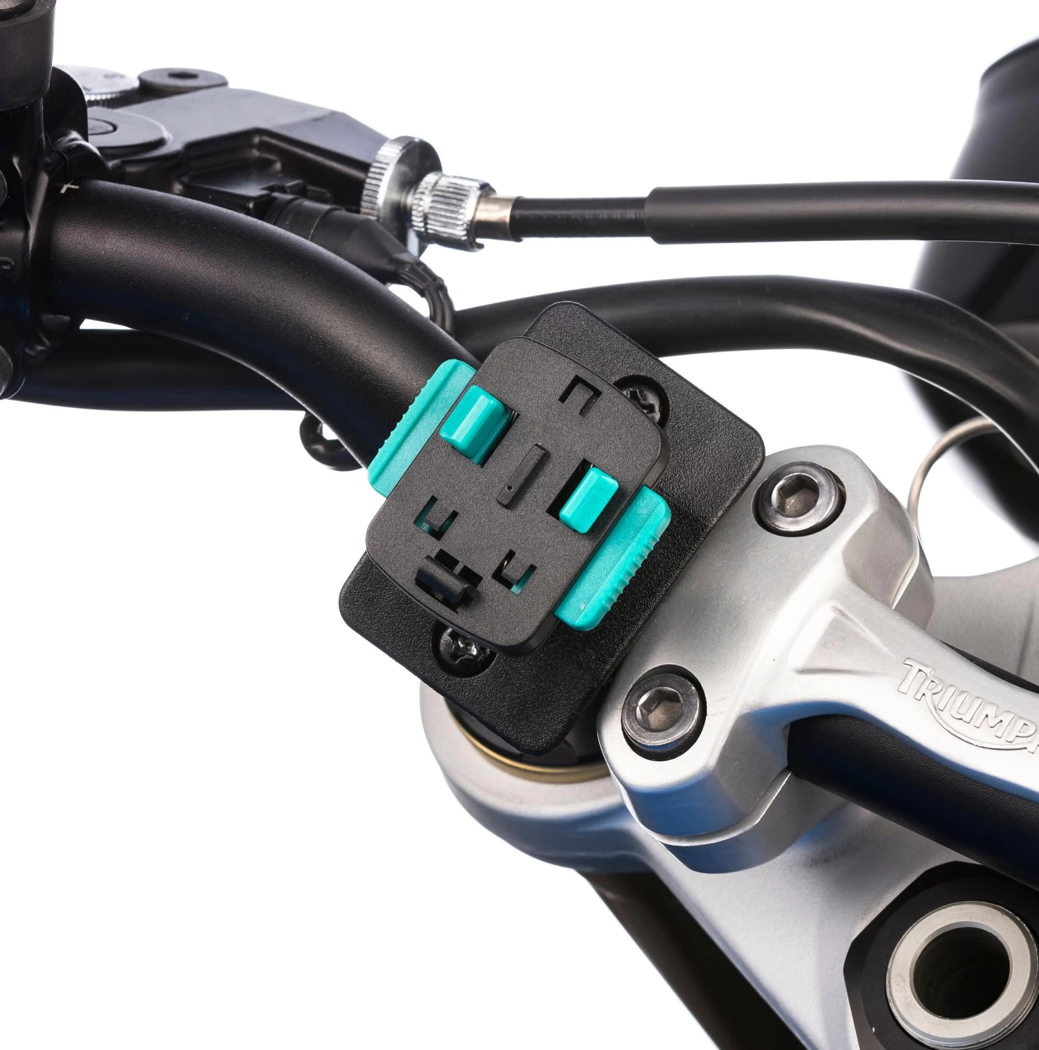 The Ultimateaddons Pro Bike Motorcycle/ Bike Mount is designed to fit securely to bike and motorcycle handlebars between 19mm and 33mm in diameter. With a rugged and discrete design, the clamp-based mount is tough and durable, gripping strongly to the bar in all conditions. The attachment is constructed with an integrated 17mm ball head, allowing for 360-degree rotation. The 3 Prong connector is suitable for attachment of all Ultimateaddons cases and holders.